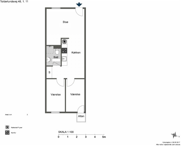 These charming three-room apartments are conveniently situated near Odense Harbor, offering a harmonious blend of urban convenience and generously planned living spaces. The two well-appointed bedrooms provide pleasant and practical layouts, each benefiting from ample natural light streaming through their windows. One of the bedrooms additionally boasts a small balcony, perfect for enjoying fresh air or a morning coffee. The spacious living room serves as an inviting central area, featuring large windows that flood the space with daylight. There is plenty of room for a comfortable seating arrangement and a social area, making it an ideal place for relaxation and gatherings. The kitchen comes equipped with fully functional appliances, creating a welcoming hub for meal preparation and social interaction. Meanwhile, the sizable bathroom is elegantly designed with modern fixtures, offering a serene environment to begin or end your day with ease.Please note that the photos may depict a different unit, so interior details, location, and views might vary. The floor plan illustrates the specific layout of this apartment.