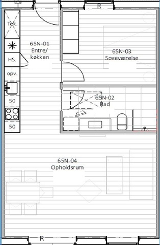 Situated in the newly developed district of Vonsild in southern Kolding, SØHOLMPARKEN is designed in a charming, contemporary village-inspired architectural style. This location benefits from a scenic natural environment and offers close proximity to several amenities including a bus stop, Vonsild School, a kindergarten, an equestrian center, and shopping facilities. Additionally, the area is conveniently just a few hundred meters from the Kolding South E45 motorway exit.The residence comprises an entrance hall, an open-plan living room and kitchen area, one bathroom, and a bedroom. It also features spacious terraces positioned both at the front and rear sides of the property. The interior fittings include appliances and cabinetry from HTH, a combined fridge-freezer, a pyrolysis oven, a dishwasher, and an induction cooktop. The home is equipped with a ventilation system, underfloor heating, and hookups for a washing machine and dryer.