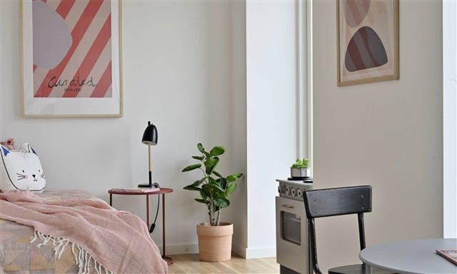Throughout the apartment, elegant oak flooring complements walls painted in a soft off-white shade that reflects sunlight, creating a bright and inviting atmosphere. The built-in wardrobes come with shelves and hanging rails for convenient storage. Laundry needs are easily met with a washer and dryer installed in the roomy bathroom.