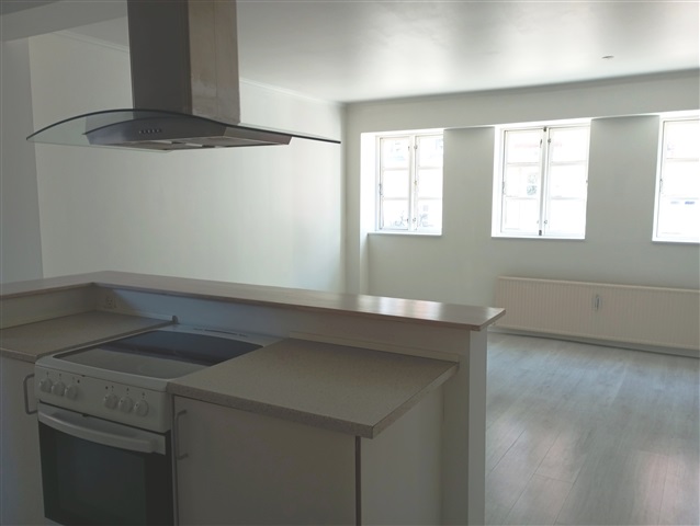 Beautiful apartment located in Viborg's Old Town with its own entrance.Contains a kitchen-dining room with a cooking island, a nice bathroom, a hallway, a living room and a bedroom.