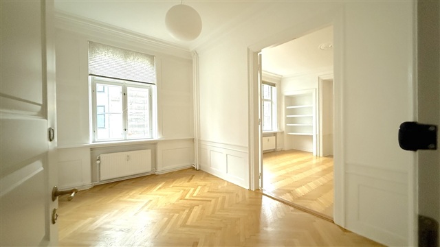 The apartment features an entryway leading into two adjacent living rooms designed en-suite. There is a spacious kitchen which can accommodate a small dining area, along with a bathroom equipped with both a washing machine and dryer. Additionally, the property includes four bedrooms and a second bathroom fitted with a shower cabin. Located close to Nyhavn, the building offers convenient walking access to the Metro as well as Copenhagen’s numerous charming shops, inviting restaurants, and cozy cafes.