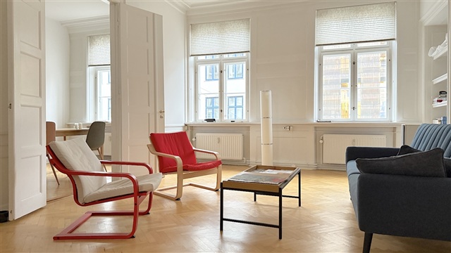 The apartment consists of an entrance hall and two living rooms en-suite. A large kitchen, with the possibility of a small dining area, and a bathroom with washer / dryer. Four bedrooms as well as another bathroom with shower. The property is located close to Nyhavn, within walking distance to Metro and Copenhagens many nice shops and cosy restaurants and cafes.- Rent paid in advance: 0