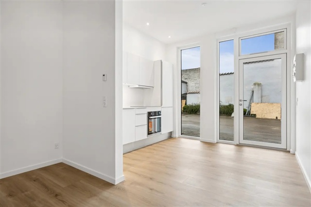 This charming one-room apartment, built in 2024, will be available for a new tenant starting April 1, 2026. Situated on the highly sought-after Søndergade, the property offers a prime location in the very heart of Silkeborg, while still enjoying a quiet, tucked-away courtyard. Access to the courtyard is restricted and secured during nighttime hours, allowing only residents of the building to enter.Upon entering the apartment, you are greeted by a spacious living area featuring solid wood flooring and abundant natural light. The living space flows seamlessly into an open kitchen, creating a pleasant and inviting atmosphere. Noteworthy kitchen amenities include a generously sized refrigerator and freezer, ceramic cooktops, a built-in oven, a compact dishwasher ideal for one or two people, and an elegant granite countertop. Adjacent to this is a modern, spacious bathroom designed with simplicity and functionality in mind. It offers ample room for both a washing machine and dryer, with pre-installed plumbing and electrical connections. The entire apartment benefits from underfloor heating, enhancing comfort throughout the space. This is a delightful apartment offering a variety of possibilities. Viewings are available every day of the week; please reach out if you would like to schedule a visit.