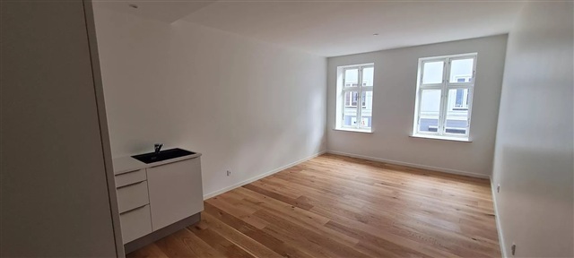The apartment features a welcoming entrance hall with ample space to install an elegant wardrobe. A spacious, contemporary bathroom includes room for a washing machine. From the hallway, you enter a large kitchen that seamlessly flows into the living room. The interior is bright and inviting, crafted with high-quality materials to provide an optimal living environment. This includes solid wood flooring throughout, underfloor heating in all rooms, a wall-mounted toilet, and a granite countertop in the kitchen. Additionally, the apartment is equipped with basic ceiling spotlights for lighting.Parking is available for rent within the courtyard, which is securely locked daily from 4:30 PM. Tenants have unrestricted access to the parking space around the clock. This apartment stands out as exceptional, and combined with its prime location, it represents a truly top-tier property in central Silkeborg. Regarding utility payments, the landlord handles advance payments for water and heating, while electricity is billed directly from the provider. Viewings are available every day of the week; please contact us to arrange a visit.