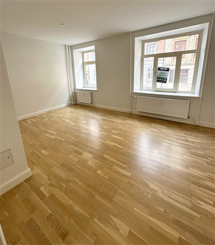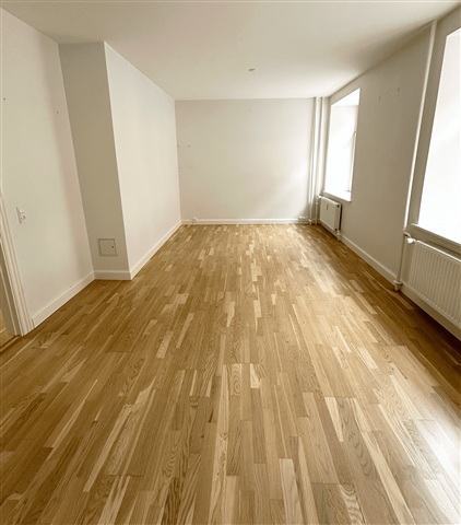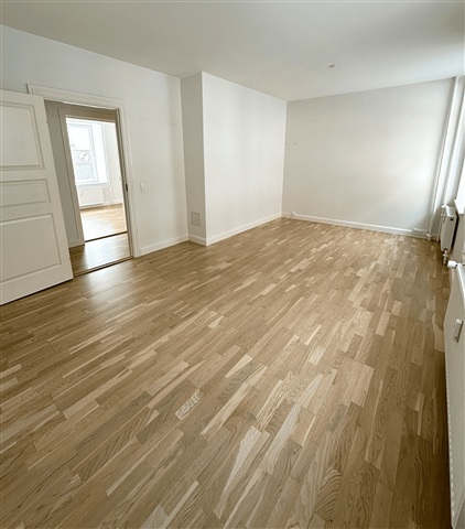 Upon entering the apartment, you are greeted by a spacious hallway that serves as a central hub, providing ample room for storing shoes and outerwear while connecting all the rooms within the unit. At the far end of this corridor, a well-designed bathroom awaits, featuring a generously sized shower area alongside practical storage solutions. To the left of the hallway lies the large, recently renovated kitchen, outfitted with abundant storage options and equipped with a dishwasher. There is sufficient space to accommodate a small dining area if desired. Moving onward from the kitchen, the living room unfolds as a roomy area ideal for both relaxation and entertaining guests. Its expansive windows allow natural light to flood the space, which is large enough to comfortably house a seating arrangement as well as a dining table. Adjacent to the living room, the bedroom is nearly as spacious, offering plenty of room not only for a bed and storage but also the possibility to include a workspace. Throughout the kitchen and entrance, recessed lighting enhances the modern and welcoming atmosphere of the apartment.Situated in the very heart of Aalborg, the property enjoys a central location that places public transportation, shopping, and the vibrant café scene within immediate reach. The surrounding area presents a pleasant blend of charming historic buildings and contemporary architecture. Additionally, the apartment is within walking distance to green spaces such as Kildeparken and benefits from the numerous offerings along the Harborfront.