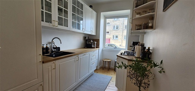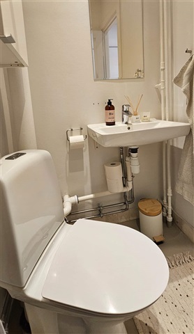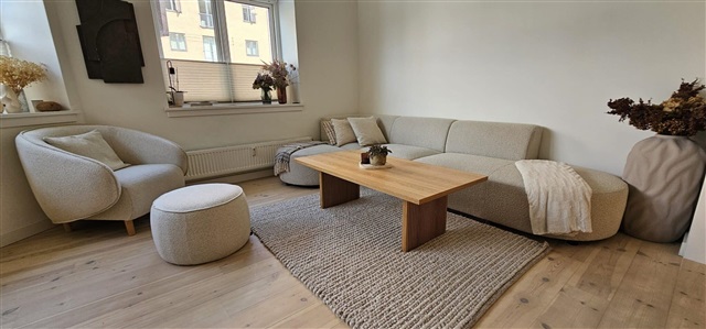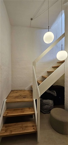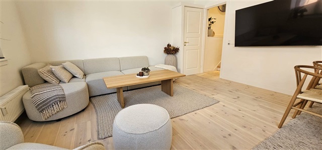 Situated on Søborg Hovedgade, this furnished residence offers a refined living experience reminiscent of a boutique hotel. The elegant and carefully chosen furnishings establish an inviting and sophisticated ambiance, perfect for those who value both comfort and high quality. Ready for immediate occupancy, the apartment comes fully equipped with all essentials required for daily living.Spread across two levels, the home features tastefully selected furniture emphasizing comfort and craftsmanship. The kitchen was fully renovated in 2024, enhancing the contemporary character of the ground floor, which is brightly illuminated by two generously sized windows that allow an abundance of natural light. The bedroom provides ample space and includes a large wardrobe, ensuring sufficient storage room for clothing. Additionally, there is a sizable multi-purpose room located in the basement, recently refurbished with white-painted walls and light-colored floor tiles. This level also offers access to a smaller storage room. Besides these, the apartment includes a cellar compartment for further storage needs.