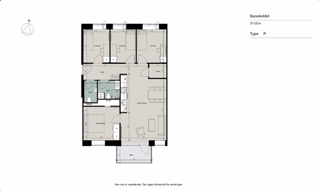 This well-designed and thoughtfully optimized apartment welcomes you through an entrance hall offering ample space for hanging outerwear. From here, a central corridor provides access to three of the four rooms, each spacious enough to accommodate both a bed and a desk. At the far end of this hallway, there is a storage room that could conveniently be converted into a walk-in closet if desired. Additionally, the corridor connects to a separate toilet and a bathroom finished in a timeless and elegant style; it is roomy and features a standalone shower area along with both a washing machine and dryer. The generously sized, bright kitchen-dining area comes equipped with a fully functional kitchen including a refrigerator with freezer, oven, stovetop, extractor hood, dishwasher, and plenty of storage options. The living room is efficiently arranged, allowing for distinct seating and dining sections. From the living area, you also reach the apartment's final room: the large and spacious master bedroom. The living room further opens out onto a sizable south-facing balcony where you can enjoy sunshine, fresh air, and a pleasant view over the nearby villa neighborhood.Throughout the entire apartment, underfloor heating has been installed, enabling independent temperature control in each room.