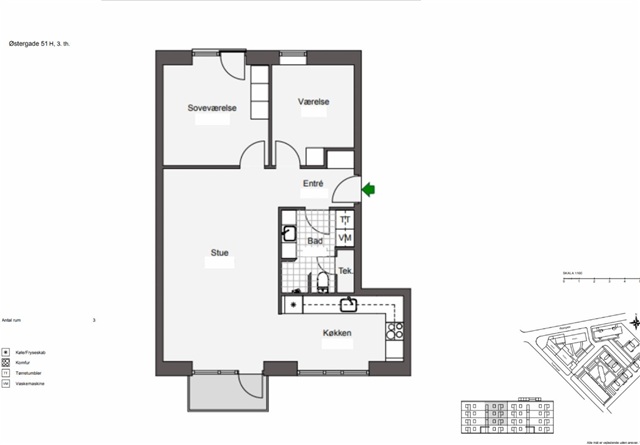 The building itself is a modern structure of four floors located in Odense C, housing a total of 86 apartments ranging from two to three rooms, with sizes varying between 45 and 97 square meters. Most units include convenient features such as both a washing machine and dryer; for those without these appliances, shared laundry facilities are available on-site. The courtyard area offers a playground along with a pleasant green space, contributing to a comfortable outdoor environment.