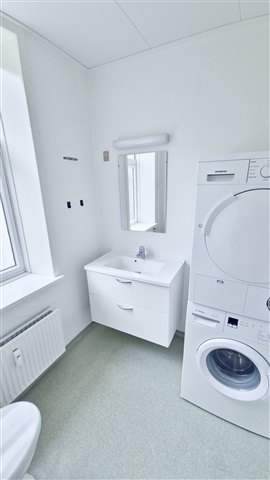 Apartment with new beech parquet floors in living room, bedroom, hallway and kitchen. Large bright kitchen with dining area and dishwasher. Kitchen furniture in beech. Bathroom with washing machine and dryer.Hallway with good cupboard space.