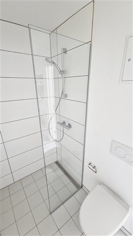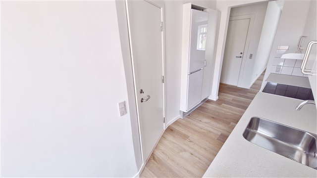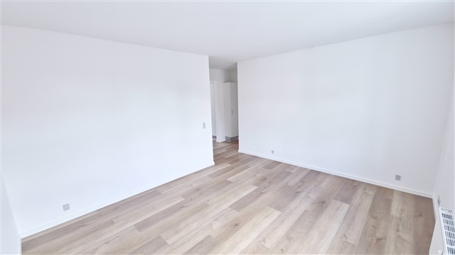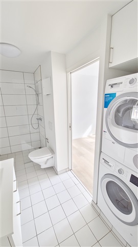 This fully renovated apartment is bright and open, located in a quiet building and featuring durable laminate flooring throughout. The bedroom is spacious and includes large sliding-door wardrobes equipped with shelves and hanging rods. The kitchen is light and stylish, furnished with white cabinetry, a large refrigerator/freezer, a ceramic cooktop, a dishwasher, and a small dining area. The living room offers ample daylight and is connected to a fiber optic internet line.The bathroom is tiled in white and includes underfloor heating, a white sink with cabinet units, a roomy shower enclosure, as well as a washing machine and dryer. Additional features include an intercom system, a locked entrance, and two storage rooms in the basement assigned to the apartment. Pets are not permitted.