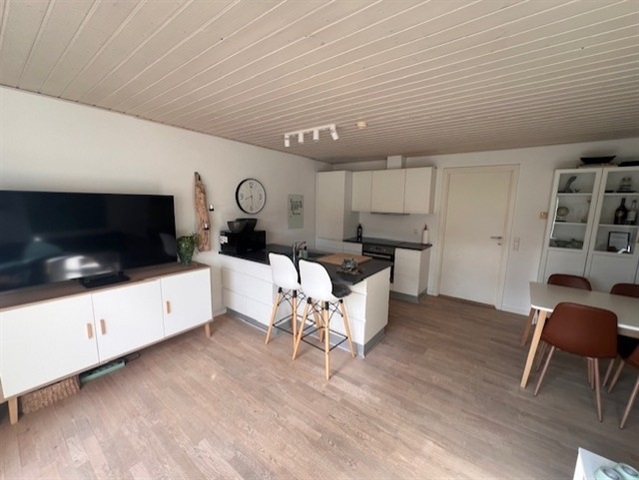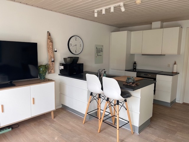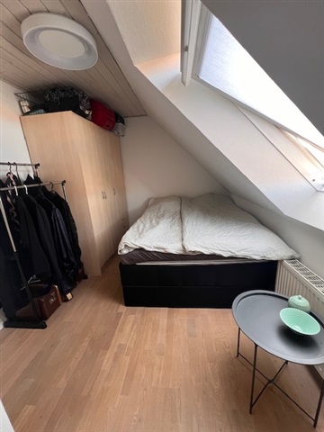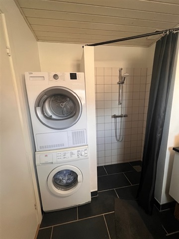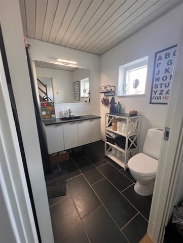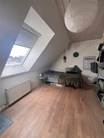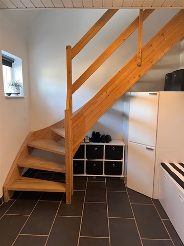 The number of square meters should not lead anyone to believe that this is a small home, as the space has been optimally utilized. The first thing that meets you when you step inside is the entrance hall with tiles and stairs to the attic. From here there is access to a lovely kitchen with dishwasher and dining area in open connection with a bright living room with space for both dining and sofa areas and access to the terrace. There is also a well-appointed bathroom with large shower.
