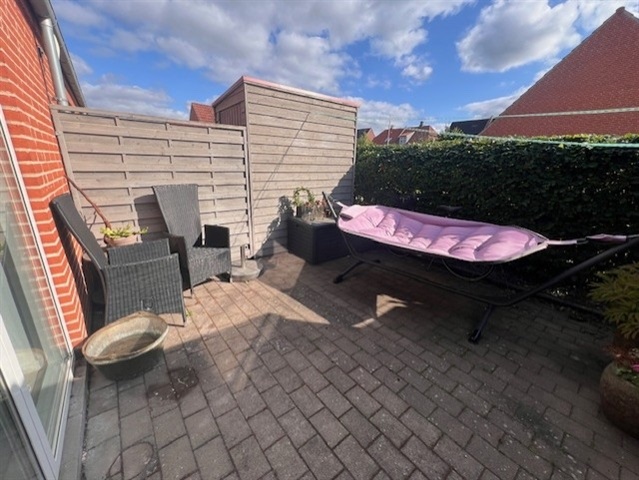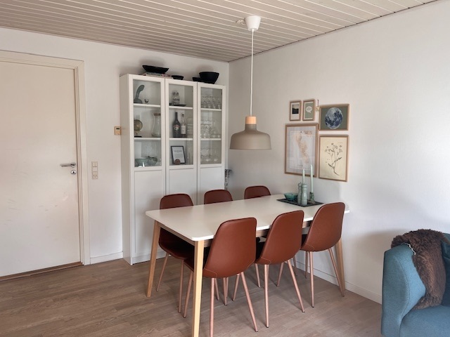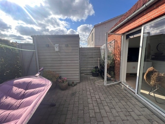 Lovely townhouse on 2 levels with its own terrace and small garden, parking and close to everything!Very attractive with a short distance to everything in Horsens, city, train station, shopping etc. Exciting townhouse with good interior design options. The home includes a parking space, outbuilding and shared courtyard.