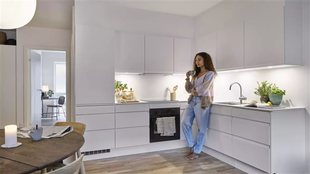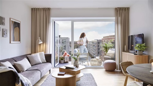 The property itself, Torveporten, is located amidst green spaces, budding community life, and numerous opportunities for those who appreciate an active urban lifestyle. This newly built complex at the old Grønttorv in Valby comprises over 170 high-quality homes ranging from two to five rooms, spanning 54 to 125 square meters, designed by Arkitema Architects.