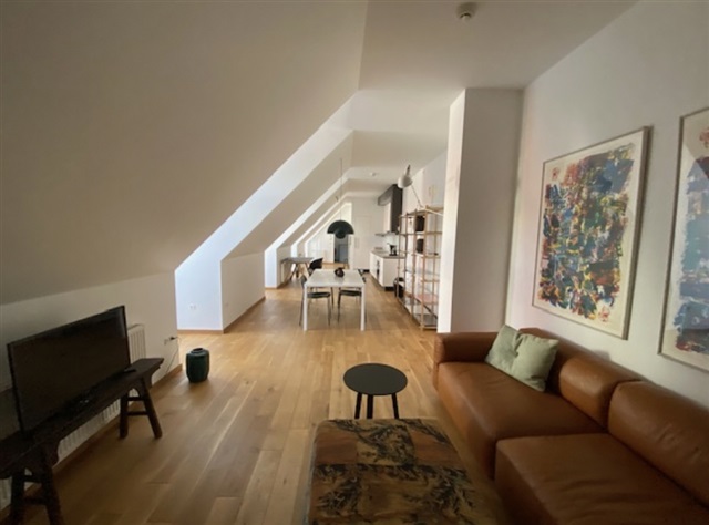 This apartment is situated on the top floor within a charming courtyard setting near Strøget and conveniently close to the Metro. It features a spacious living room combined with an open kitchen layout, a generously sized bedroom, and a delightful bathroom equipped with a bathtub. Please note that the furniture differs somewhat from what is shown in the photographs.Access to the second floor is provided via an elevator. Registration of residence at this address is not permitted.