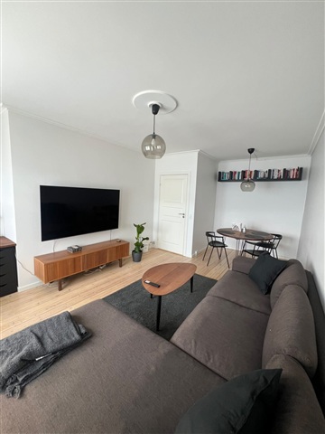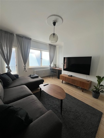 2-bedroom apartment of 56 square meters, perfect for couples or friends who want to share a modern and functional home.The apartment is nicely renovated with a new bathroom and kitchen. The spacious living room has large windows that provide a lovely light and a view of green common areas. The living room has space for both a sofa arrangement and a dining area. The bedroom offers plenty of space for a double bed and storage.