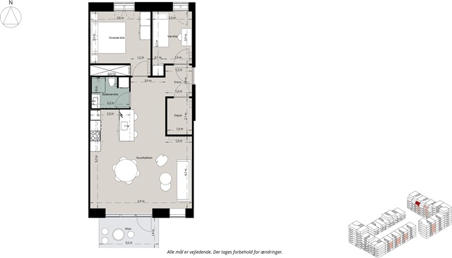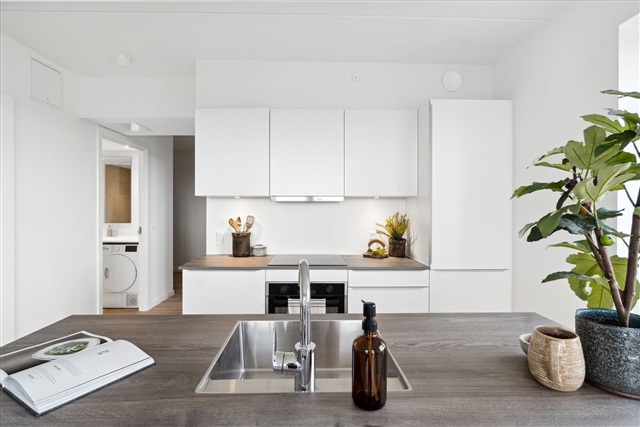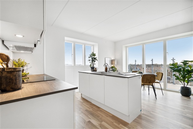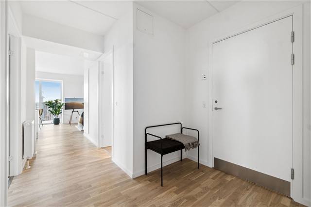 Designed with attention to every detail, the apartments emphasize spacious living areas featuring Svane kitchens, bright oak flooring, and large windows that provide ample natural light along with views either overlooking the cityscape or the courtyard. The bathrooms come equipped with underfloor heating, as well as a washing machine and dryer. Thoughtful storage solutions have been integrated throughout each unit, including built-in wardrobes, and all apartments offer access to a private storage room located either within the unit itself or in the shared basement.Each residence is allocated one parking space within a parking garage. All homes include an outdoor area such as a balcony, terrace, or roof terrace, each measuring at least 6 square meters. High-quality, carefully selected materials have been used to furnish the interiors, creating a tasteful environment designed to accommodate your lifestyle. Please note that the floor plans and images are for guidance only; the photographs shown are from a model apartment. It is important to mention that although the apartments fall under the jurisdiction of Albertslund Municipality, they are situated in the town of Glostrup.