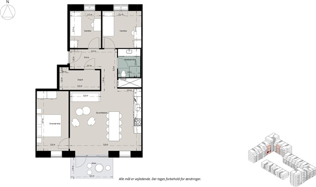 Furnished with attention to every detail. Emphasis is placed on spacious living spaces that offer Swan kitchens, light oak floors and beautiful light from the large windows with views of the city or the courtyard. The bathrooms are equipped with underfloor heating, a washing machine and a dryer. The apartments have emphasis on good storage solutions in the form of cupboards and all apartments have access to a private storage room either in the apartment or in the shared basement. There is a parking garage with one space per apartment. All apartments are equipped with a balcony, terrace or roof terrace of at least 6 square meters and the apartments are furnished in well-chosen and tasteful materials. In short, space has been created for you and yours. Please note that the floor plans and pictures are indicative. The pictures of the apartment are from the sample apartment. NOTE: The apartments belong to Albertslund Municipality, but are located in the town of "Glostrup"If you want to read the description in its original language that is also possible. Read original description