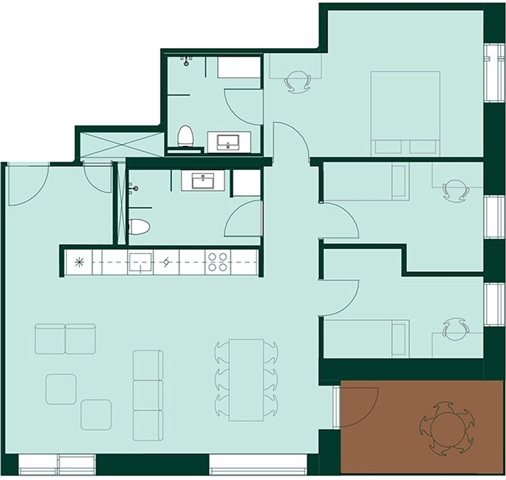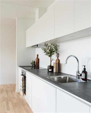 The Solviften development comprises a total of 80 Swan-labeled apartments distributed across six distinct tower buildings designed by Tranberg Architects. Within each tower, there are three unique types of residences available. Every type features a bright and spacious living room combined with an integrated kitchen area. Underfloor heating is installed throughout the homes, enhancing comfort and contributing to a pleasant indoor climate. It should be noted that apartments of the same type may vary slightly in their BBR floor areas and window placements. Additionally, the floor plans can be mirrored depending on the unit's location within the building.Each apartment includes a private outdoor space in the form of a balcony, which is enclosed to function as an extended living area, providing room for a café table. This setup allows residents to enjoy the changing seasons from outdoors protected by glass panels that can be slid open during warm weather to create an open-air environment. Parking options are available nearby with designated car parking spaces and bike racks close to the residences. Extra guest parking spaces are also provided to ensure ample accommodation for visitors. Furthermore, each apartment owner has access to a personal storage shed situated near the parking area, ideal for keeping items not used daily. Every tower is equipped with an elevator, and mailboxes are located in the entrance area. The neighborhood will also feature designated waste stations for convenient disposal. Please note that both floor plans and photos of the apartments are intended as indicative only.