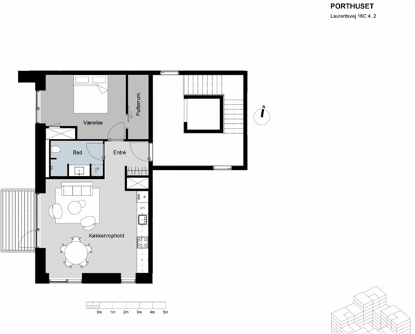 Upon entering this spacious two-room apartment, you are greeted by a bright and generous kitchen-living area that opens onto a balcony. The large bathroom is equipped with a combination washer-dryer and a shower enclosure. The bedroom is wonderfully light and also has direct access to the balcony, offering a pleasant spot to enjoy the sunlight.Constructed in 2019, this appealing building is part of the section known as Købmandsgården on Krogshøjvej, characterized by its bright atmosphere and attractive views. The structure features projecting facades and varying heights, with some parts rising up to nine stories, giving the building a dynamic and visually interesting appearance. While boasting an architectural aesthetic throughout, the property also addresses the needs of modern families with its practical design. An elevated atrium courtyard with inviting flower beds and seating areas is included within the property grounds. The development offers 154 rental units varying in size from 57 to 133 square meters, allowing for a selection of two- to five-room apartments. This variety caters to a wide audience, from individuals and young couples to families with children and seniors, fostering a diverse community of residents. High-quality materials are featured throughout, including laundry appliances and major kitchen appliances from Siemens, Svane brand kitchens, and convenient wardrobe space in the bedrooms. Additional amenities comprise elevator access, underfloor heating, doorphones for security, bicycle parking, and the option to rent a parking space in the basement.