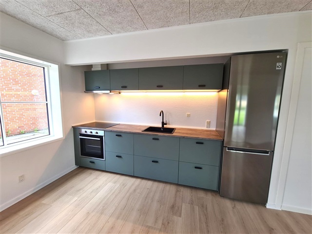 The villa has just been completely renovated with the best materials and is now ready to move into. There is, among other things, a brand new kitchen with all appliances and new beautiful floors throughout. The villa is furnished with a large, bright kitchen/family room, 3 large bedrooms, a spacious hallway and a bathroom. There is also access to fine shared laundry facilities.The villa has a garden with many possibilities for individual decoration. Only 30 km. to Randers. Call for a viewing.