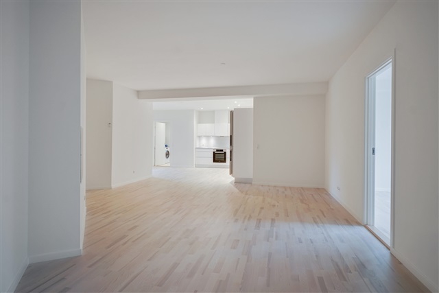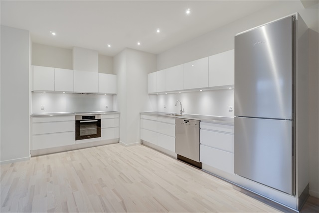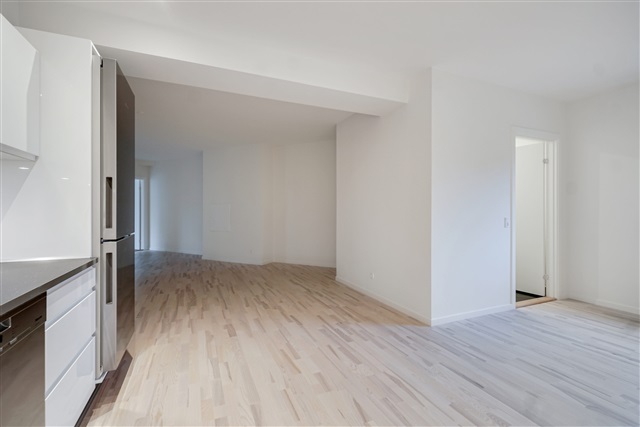 Just steps away from Kolding's pedestrian street, this newly constructed ground-floor apartment offers three rooms spanning 119 square meters. The entrance hall, equipped with built-in closets, doubles as a utility room containing its own washing machine and dryer. The kitchen boasts a sleek high-gloss finish and is fully outfitted with top-of-the-line Miele appliances, including a dishwasher. An ample dining area seamlessly connects to a very spacious living room, creating an open and inviting atmosphere.Inside, you will find two lovely bedrooms, each featuring fixed wardrobes, alongside a large bathroom fitted with a walk-in shower and a wall-mounted toilet among other amenities. Throughout the entire apartment, elegant parquet flooring and underfloor heating contribute to a comfortable living environment. Additional features include an intercom system and a basement storage room.