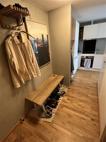 The development consists of seven point blocks, two of which are 14-story buildings. Apartments on the upper floors provide stunning views over the city of Aarhus, with the bay visible on the horizon, while those situated on lower levels overlook a spacious landscaped outdoor area. This green space has been thoughtfully designed to include features such as a fire pit, cozy seating areas, trees, and outdoor fitness equipment. Completed in 2020, Området has since become home to a diverse group of residents, including students, couples, singles, and families with young children. A parking garage is available on-site, offering rental spaces for cars and storage for bicycles. Additionally, each apartment has access to a storage room located in the basement.