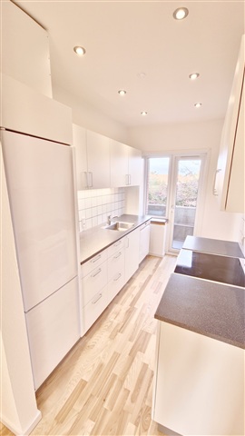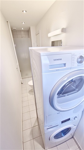 This recently renovated apartment features new beech parquet flooring throughout the entire space. The bright kitchen is equipped with white lacquered cabinets and includes a dishwasher for convenience. The bathroom is fresh and inviting, showcasing white tiles and white fixtures, along with both a washing machine and a dryer. The unit also benefits from two balconies, one accessible from the living room and the other from the kitchen. Please note that pets are not permitted.