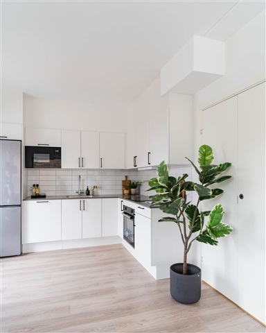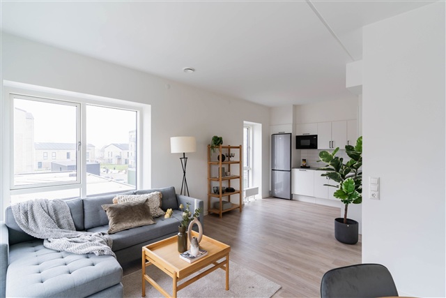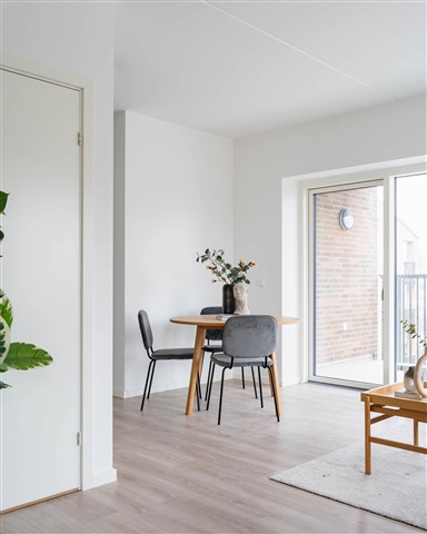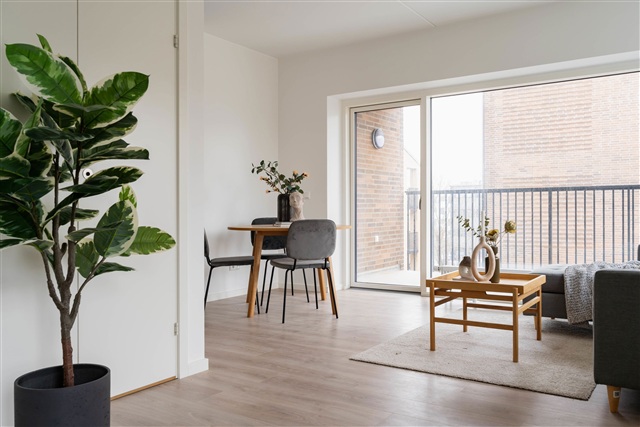 Situated in Ballerup, this development offers thoughtfully designed floor plans that maximize the use of every square meter. Options include both two- and three-room apartments, catering to a variety of preferences. The residences are finished with high-quality materials, featuring oak laminate flooring throughout and tiled areas in the entrance and bathroom-an intelligent choice to prevent dirt from being tracked onto the wooden floors. Built-in wardrobes are provided in the bedrooms, along with a full suite of appliances, including a washer and dryer.Each unit benefits from generous outdoor space, consisting either of a spacious terrace or a large balcony, enhancing the living experience. Pet owners are welcome here, with permission granted for either one dog or one cat up to a maximum weight of 25 kilograms; to put this in perspective, the heaviest recorded cat weighed 18 kilograms, so your feline would have to break records to reach the weight limit. Please note that the images shown originate from a sample apartment located at Telegrafvej, 2. th and 2. mf, and the floor plans provided are for guidance only.