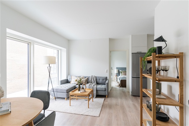 Situated in Ballerup, this neighborhood offers well-designed layouts that make efficient use of every square meter. There are both two- and three-room apartments available, catering to a variety of preferences. Each residence features high-quality finishes, including oak laminate flooring throughout and tile flooring in the entrance and bathroom-an elegant solution to prevent dirt from being tracked onto the oak floors. Built-in wardrobes are included in the bedrooms, and the apartments come fully equipped with all necessary appliances, such as a washer and dryer.In addition to the thoughtfully arranged interiors, every unit benefits from an ample outdoor area, with either a spacious terrace or a large balcony. Pet owners can also be reassured, as the building's policy permits one dog or cat weighing up to 25 kilograms (noting that the heaviest recorded cat weighed 18 kg, so a record-breaking pet would be needed to exceed this limit). Photographs are from a show apartment located at Telegrafvej 25, 2nd floor right and 2nd floor middle, and floor plans should be viewed as indicative only.