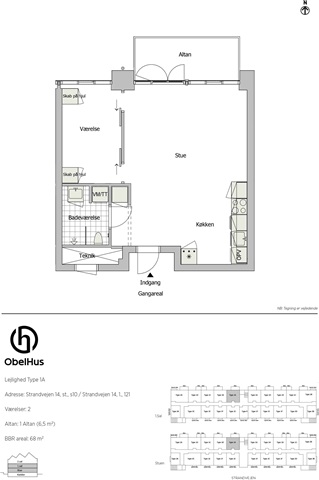 The residential units along Strandvejen in Aalborg offer a variety of rental apartments ranging from one to four rooms, with sizes spanning between 48 and 114 square meters. These apartments showcase distinctive floor plans, with some arranged over two levels where the ceiling height accommodates an additional bedroom. Each unit includes a type of balcony, whether a French balcony or a traditional one, and a selection even features both styles.This building, once a factory and later used by Aalborg University for educational purposes, has been transformed into 65 modern rental apartments certified under the Swan label for sustainability. The residences exhibit a New York-inspired design, characterized by lofty ceilings, steel staircases, exposed piping, and unfinished walls, together creating a contemporary and unique living environment. Kitchens come fitted with Stykka cabinetry and Electrolux appliances. Residents also have access to a shared large rooftop terrace that offers views of both the city and the water.