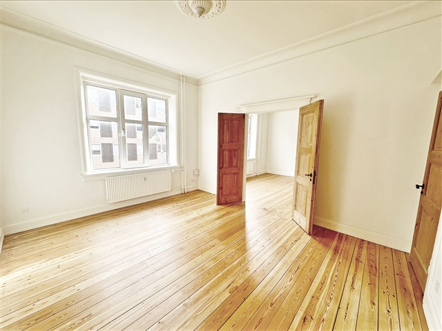 This beautifully updated apartment seamlessly blends traditional character with contemporary convenience. Notable for its high ceilings and numerous elegant features, these elements together create a distinctive ambiance throughout the space. The residence also offers a modern kitchen and bathroom, both equipped with a full range of appliances, designed to simplify daily living.Spanning 109 square meters and comprising three generously sized rooms, the apartment is well-suited for shared living arrangements. If three tenants choose to share, each can enjoy a central city location for just 2,500 DKK per month. The images provided are from a comparable rental unit.