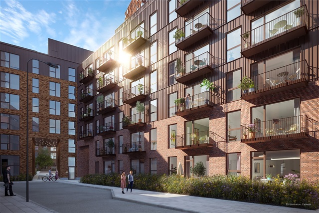 The building, known as Albertina Hus, is conveniently located next to the charming Lagergade and Kedelpladsen, where various shops and restaurants can be found. The property comprises 28 units, ranging from two to five rooms and measuring between 61 and 110 square meters. Additionally, there are two penthouse apartments, each featuring a sizable rooftop terrace. Every dwelling is equipped with Miele appliances, including a washing machine and dryer.
