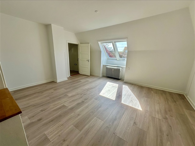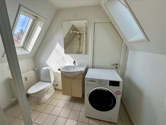 A spacious and inviting three-room apartment is now available for rent in the heart of Viborg, situated within easy walking distance of the city's pedestrian street and nearby shopping options.The layout comprises an entrance hall, a large and bright living room, a bedroom featuring built-in wardrobes, and an additional room that can serve various purposes such as a child's bedroom, a home office, or a guest room. The kitchen has been completely renovated and includes modern appliances, with the oven installed at a convenient working height to enhance ease of use. The bathroom is well-equipped, offering a shower and a private washing machine.