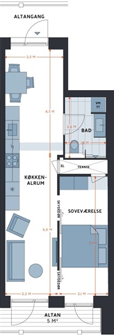 Please note that the images provided are illustrations and may not depict this specific residence; instead, they could represent other apartments or townhouses within the same complex.The apartment itself makes efficient use of every square meter. Upon entering, you step directly into an open-plan kitchen and living area, spacious enough to accommodate both a dining space and seating area. This leads to a sizable bedroom and a bathroom equipped with a separate shower cabin. Additionally, there is a pleasant balcony facing south that is accessible from both the living room and one of the bedrooms.