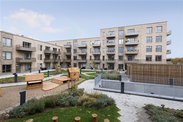 The area is built as a block of flats with private outdoor areas, where two buildings together form an open block structure. The property consists of 71 rental apartments, 2-5 rooms of between 52 and 109 m2 - so there is room for the single person, the couple or the larger family to unfold.The property has a cosy courtyard with common areas and a playground for the little ones. There is also a ramp up and down to the underground car park. There is also a lift in all staircases that goes down to the basement level. There are designated areas for bicycle parking in the basement. All apartments have a locked storage room in the heated basement.All apartments have a door phone with camera.Possibility to keep one dog or one cat with the landlord's written permission.