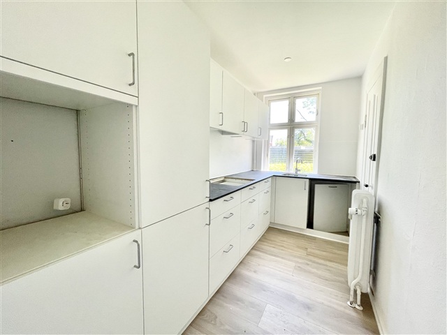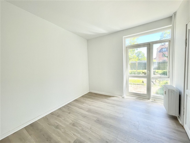 This inviting ground-floor apartment in Viborg offers three rooms and includes a private terrace, situated in a central location. The living space features two adjoining living rooms that together form a bright and spacious area, providing ample room for both relaxation and cozy gatherings. The bedroom is equipped with built-in wardrobes and has direct access to the private terrace, allowing for peaceful outdoor moments.The kitchen, completely new as of 2025, boasts a modern and practical design, fitted with a refrigerator/freezer, oven, cooktop, and exhaust hood. The bathroom is designed for convenience, featuring a shower niche that facilitates everyday routines with ease. Additionally, the apartment contains both a washing machine and a tumble dryer for added comfort.