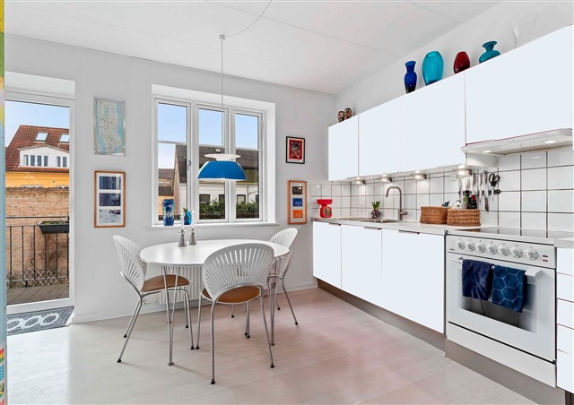 This apartment is ideal for someone who wants to live right in the heart of the city within truly distinctive surroundings. Offering three rooms, it provides an excellent fit for those seeking a unique urban home. The charm of this residence is difficult to capture fully in photographs and must be appreciated in person. Notably, the kitchen cabinets have recently been replaced with oak fronts. The unit features a balcony and is equipped with a dishwasher, washing machine, and dryer. There is a spacious shower area and the apartment is spread over two levels, including a wood-burning stove in the living room. Pets are permitted here, and a parking permit for Aalborg city center is included.Residents have access to a well-maintained, shared enclosed garden that boasts a large wooden terrace, a lawn, a smoke oven, beautiful trees, and flower beds. Additional benefits include a large storage room in the basement and a loft area suitable for overnight guests. Inside, the cozy and thoughtfully designed apartment offers a generously sized living room with attractive flooring and ample natural light, a large bedroom featuring a wardrobe, and a spacious kitchen with room to entertain visitors. The location is exceptionally convenient, positioned in the center of Aalborg within walking distance of cafés, shopping, public transportation, and green spaces. Parking availability directly outside the building further enhances the ease of living here.