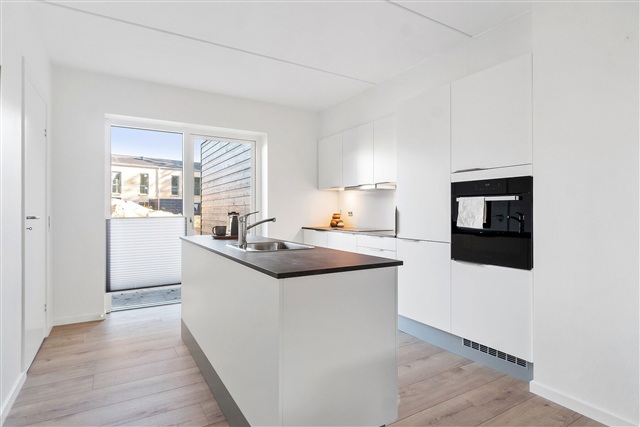 Situated on Fuglekærvej, this bright and well-planned two-story terraced house offers a seamless blend of practicality and cozy living. Upon entering, you are greeted by a spacious hallway with ample room for coats and shoes, along with a cleverly integrated laundry area featuring both a washing machine and dryer, making daily chores straightforward and efficient.Moving further inside, the heart of the home reveals itself as a timeless kitchen equipped with all essential appliances, including a dishwasher. The kitchen flows openly into the living room, creating an airy, light-filled space designed for cooking, relaxing, and socializing. Large windows flood the area with natural light while offering a harmonious connection to the outdoors. From the living room, direct access leads to a charming terrace that opens onto peaceful green communal spaces. Additionally, at the front of the house, there is potential to set up a cozy outdoor spot welcoming visitors and enhancing the usable exterior area.