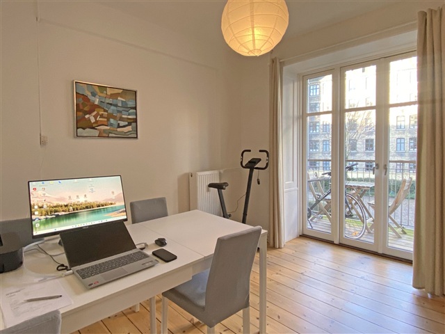 Located near the lakes on the charming Frederiksberg, this furnished apartment is available for rent over a six-month period starting May 1st. Spanning 77 square meters, the layout includes an entrance hall with wardrobe space, a cozy eat-in kitchen, a living room, a dining room, a bedroom, and a bathroom equipped with a shower. The dining room opens onto a spacious balcony that offers views over a green communal area. The apartment enjoys close proximity to shopping options, Forum Metro station, various public transport links, as well as shops, cafés, restaurants, fitness centers, and many other attractions that Frederiksberg has to offer. This residence can be occupied with or without official registration of residence.