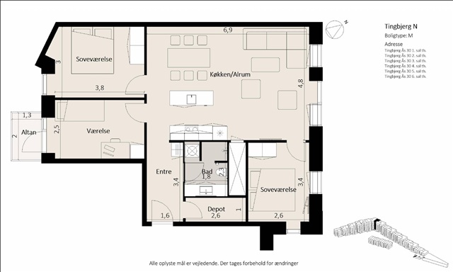 This spacious four-room apartment in Tingbjerg offers ample living space and a practical layout ideal for those seeking comfort and functionality. Featuring three generously sized bedrooms, there is plenty of room for storage as well as privacy. The open kitchen, equipped with a kitchen island, provides a comfortable area for meal preparation while maintaining a direct connection to the adjoining living and dining space. This living area can easily accommodate a large sofa set, making it suitable both for relaxation and social gatherings.Access to a balcony is available directly from one of the bedrooms, offering a pleasant spot to enjoy morning coffee or soak up the sun. The apartment includes a modern bathroom and benefits from underfloor heating throughout all rooms, ensuring a consistently comfortable indoor climate throughout the year. Conveniently located close to public transportation, shopping facilities, and green spaces, this home combines ease of everyday living with a tranquil environment.