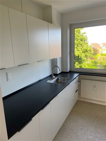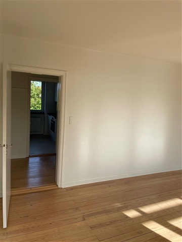 A bright apartment spanning 60 square meters is available for rent. The living space features attractive plank flooring, a neat white kitchen, and a bathroom, along with a balcony accessible directly from the living room. There are two well-sized bedrooms offering ample closet space. The bathroom is equipped with a charming original terrazzo floor and light-colored tiles, including a shower niche. Convenient parking options are provided on the courtyard in front of the building, where free parking is permitted. Additionally, residents have access to a shared outdoor area furnished with garden furniture. In the basement, there is a bicycle parking facility and two complimentary storage rooms allocated per apartment. Shared laundry facilities including a washing machine and dryer are also located in the basement. The photographs shown are from a comparable unit within the same property. Prospective tenants must undergo a credit check, which will utilize their CPR number, upon application. Renting through Newsec requires that applicants are not listed in the RKI register.