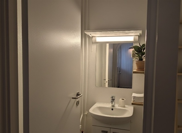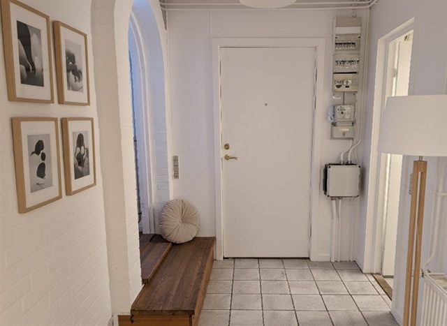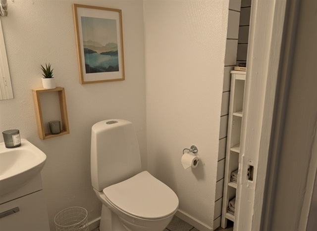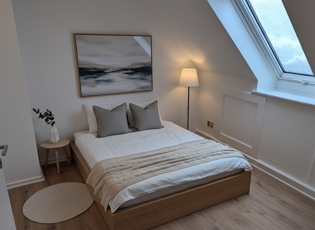 The rental apartment is situated on Koldingvej, just north of Christiansfeld, within the historic building known as "Det Gamle Toldsted."Ideal for a small family or a couple seeking spacious accommodation, this residence features a well-thought-out layout that spans partly across the ground floor and partly on the first floor of the property. Upon entering on the ground level, one is greeted by a welcoming entryway that includes a cozy wood-burning stove capable of heating the entire apartment if chosen as the main source of warmth. Alternatively, the apartment is equipped with standard central heating. On this level, there is also a well-sized bathroom featuring a shower enclosure.