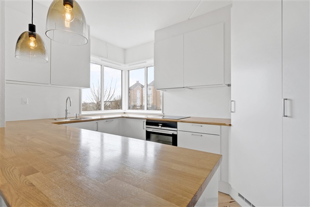 Set within a peaceful, green environment yet centrally located, this apartment on Blegkilde Allé offers a unique combination of tranquility and convenience, complemented by stunning views, abundant natural light, and modern amenities. The detached building ensures bright interiors and unobstructed vistas from every window, creating an open and welcoming atmosphere throughout the day. An appealing move-in price makes this an even more attractive option.This thoughtfully designed, ready-to-move-in residence features three well-proportioned rooms that maximize usable space efficiently. Ample closet storage simplifies day-to-day organization. From the apartment, you can enjoy picturesque views over Eternitten and the cityscape of Aalborg. The kitchen boasts an exclusive Invita design that is both sleek and timeless, equipped with high-end Siemens appliances including a built-in oven with pyrolytic cleaning, an induction cooktop, a combined fridge-freezer, and a dishwasher. The bathroom has been modernized and includes a combined washer-dryer unit for added convenience.
