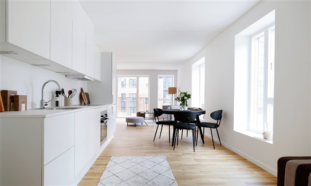 This attractive courtyard-style building fosters a strong sense of community, centered around shared amenities such as the communal house, orangery, and courtyard garden. Designed by C.F. Møller Architects, the property encompasses 264 apartments. Within the courtyard, residents benefit from various collective facilities, including a charming communal house paired with a cozy orangery, all thoughtfully intended to promote well-being and nurture a thriving community spirit. Hørkær Have is on track to receive DGNB Gold certification, assuring you that the building is designed with environmental sustainability along with your health and comfort in mind. The construction incorporates eco-friendly materials, maintains a healthy indoor climate, and enhances value through well-planned shared spaces.