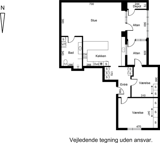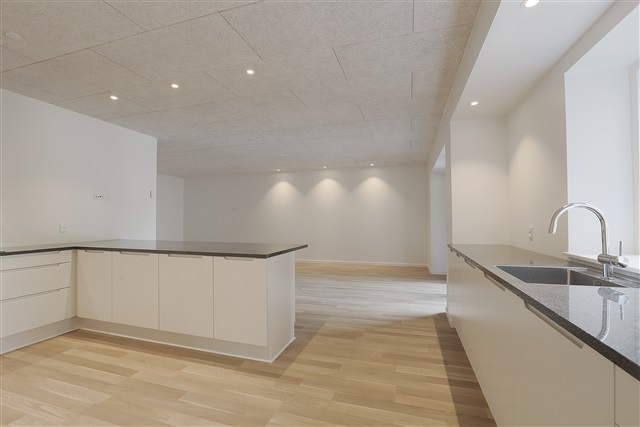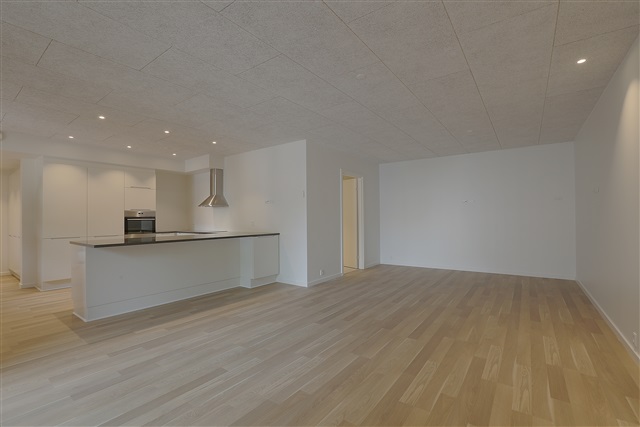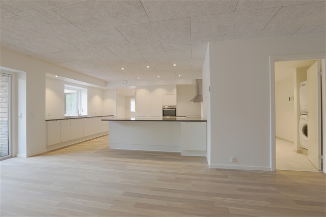 Spacious and modern apartment in a newer architect-designed building on the corner of Torvegade / Nørregade, in the middle of Esbjerg. The apartment is located on the ground floor and is furnished with an entrance hall with built-in wardrobes, as well as a large bathroom with light tiles and underfloor heating, as well as a shower, a washbasin and a washing machine and dryer from the Electrolux brand. In addition, a large combined dining and living room has been established, which is in open connection with the apartment's spacious INVITA kitchen. The kitchen has white cabinet doors and black granite countertops, and contains all integrated white goods, including a dishwasher, fridge-freezer, induction hob and self-cleaning pyrolysis oven. All in the latest energy-saving series from Electrolux. From the living room, and from one bedroom, there is access to a northwest-facing balcony of approximately 14 m2 with folding glass sections that protect against wind and weather. In connection with the balcony, a small shed has also been established for storage. From the balcony there is a view of the cozy courtyard behind the property. The apartment is furnished with 2 good bedrooms, with built-in closet walls with sliding doors with mirrors. All living rooms have durable Berry Alloc floors, and built-in LED spots have been installed in the ceilings and ventilation systems throughout the home. The apartment also includes an extra storage room in the basement under the property, where there is also the possibility of bicycle parking, and elevators have been established from the basement to the attic. NO PETS ALLOWED. Please contact us if you would like a showing of this lovely apartment!If you want to read the description in its original language that is also possible. Read original description