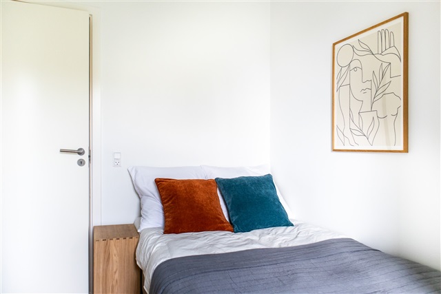 This is a modern and functional apartment with 4 four single bedrooms, private balcony, separate depot room in the apartment, beautiful bathroom and a kitchen/lounge area in the same room.High-quality bed with bedspread, duvet and pillows.