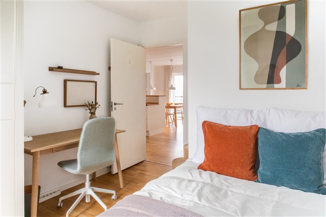 This beautiful and modern apartment is always full of light and consists of four single rooms. There are 2 spacious and beautiful bathrooms and a large open kitchen with a lounge area overlooking the Copenhagen skyline.High-quality bed with bedspread, duvet and pillows