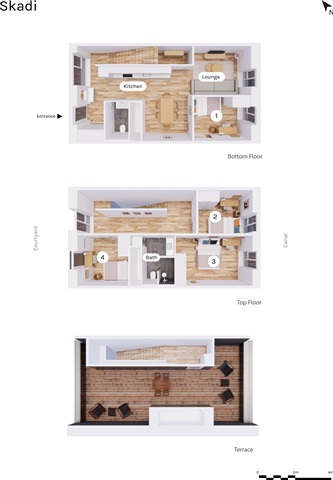 This duplex apartment, constructed recently, features a private rooftop terrace measuring 35 square meters. The interior is adorned with elegant wooden flooring and oversized double-glass windows that allow ample natural light. The unit is equipped with a video intercom system and central heating throughout. Each room benefits from underfloor heating, which can be individually regulated via digital controls.On the lower level, the layout includes a contemporary dining kitchen that seamlessly flows into a TV lounge area, alongside a guest toilet, one bedroom, and a storage room. Moving to the upper floor, there is a hallway leading to a spacious bathroom, three additional bedrooms, and stairs providing access to the rooftop terrace.