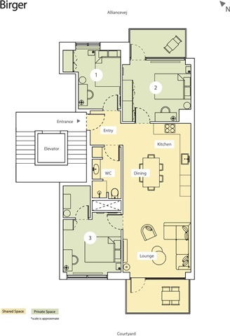 There is a nice green backyard with lots of bicycle parking.