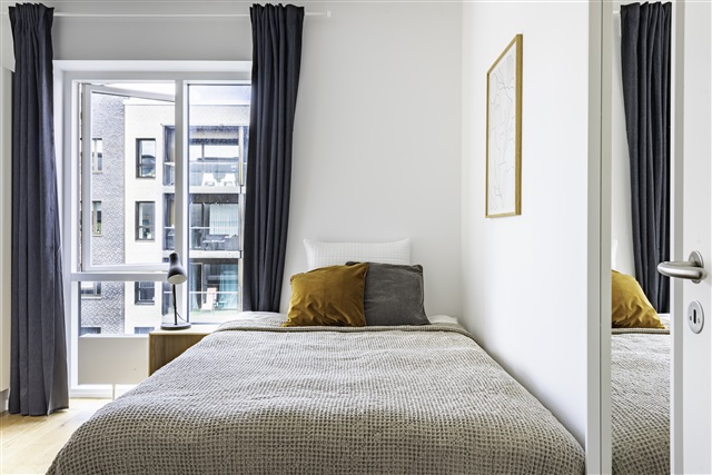 This modern apartment has beautiful wooden floors and large double glass windows and central heating. There are 3 bedrooms, an open kitchen with dining area and a lounge area with TV. There is 1 shared bathroom with a laundry machine and dryer.From the kitchen / livingroom you have access to the large shared balcony.